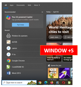 STEP 1:- सबसे पहले शॉर्टकट key WINDOW +S बटन press करेंगे
