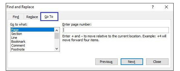 DOCUMENT के किसी विशिस्ट स्थान तक पहुचने के लिए इस कमांड का प्रयोग किया जाता है आप किसी विशेष Page No, Object Bookmark आदि में पहुचना चाहते है तो आसानी से पहुंच सकते है Go To डायलोग बॉक्स ओपन करने के लिए Go To command पर क्लिक करे या किबोर्ड से Ctrl +G बटन दबाये