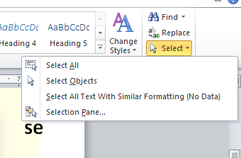 3. SELECT TEXT WITH SIMILAR FORMATTING -यहाँ से आप एक तरह की फोर्मटिंग किसी टेक्स्ट की शकल और सूरत होती है जब आप किसी टेक्स को सेल्क्ट करने के बाद इस कमांड पर क्लिक करते है तो यह कमांड उस टेक्स्ट के जेसी फोर्माटिंग वाले सभी टेक्स्ट को एक साथ सेलेक्ट कर लेता है