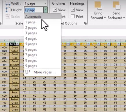 STEP 5 : SET PAGE SCALING (HIGHT AND WEIDTH ) :- अगर आप चाहते है कि आपका डाटा एक ही PAGE में आये और बाकि का डाटा multiple sheet में आये तो इसके लिए डाटा में HIGHT OR WEIDTH सेट करना बहुत जरुरी है HEIGHT OR WIDTH SET करने के लिए पेज LAYOUT TAB में जायेंगे और यहाँ पर HEIGHT OR WIDTH का आप्शन मिलेगा तो हम WEIDTH में 1 डालेंगे और hight को AUTOMATIC छोड़ देंगे इससे WEIDTH एक पेज में एडजस्ट हो जाएगी और आपका डाटा अगर बड़ा है तो multiple sheets मैं Adjust हो जायेगा