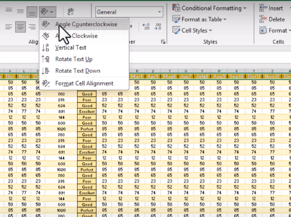 STEP 7 : CHANGING HEADING ORIENTATION – ये एक BONUS STEP है जिससे कि आपका डाटा एक Professional Look देगा जब भी आप अपने डाटा को प्यरिंट करेगे इसके लिए आप HOME TAB में जायेंगे और ORIENTATION में क्लिक करेंगे और इसमें 1ST वाले आप्शन में क्लिक करेंगे ANGLE COUNTERCLOCKWISE इससे आप देखंगे कि आपकी HEADING ROW ROTATE हो जाएगी तो अब डाटा को सेलेक्ट करेंगे और फॉर्मेट में जायेंगे अब पुरे डाटा को सेलेक्ट कर लेंगे और FOMAT में जाकर AUTOFIT COLUMN WEIDTH में क्लिक करेंगे इससे आपके डाटा थोडा ADJUST हो जायेगा
