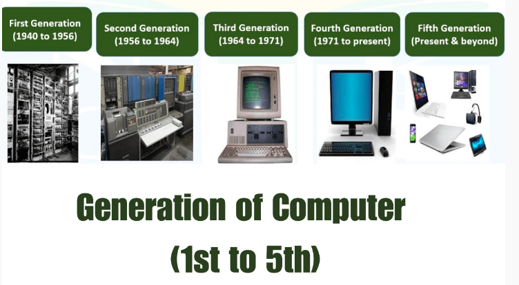 कंप्यूटर की तकनीक को विकसित होने में लगभग पांच पीढियों का वक्त लग गया है इसलिए कंप्यूटर की पांच पीढ़िया होती है जो कि निचे दी गयी है :-