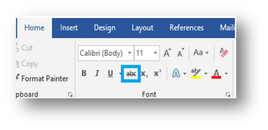 STEP 2:- अब Home Tab के Font Group में Strikethrough (ab) Option पर click करे
