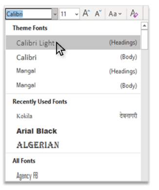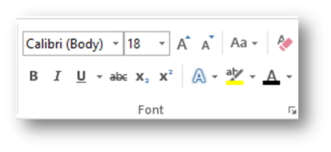 1. Font group: – फॉण्ट ग्रुप टेक्स्ट का एक ग्राफिकल रिप्रजेंटेशन है जिसमे एक अलग typeface, point size, weight, color या design शामिल होता है