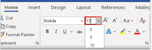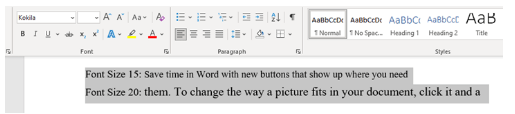 STEP 2:-उसके बाद आप Home Tab पर क्लिक करे , Font Size को सेलेक्ट करे और टेक्स्ट को जिस साइज़ में रखना चाहते है वो size box में लिख दे
