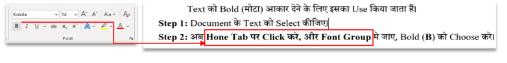 STEP 2:- अब Home Tab पर click करे ,ओर Font Group में जाए BOLD (B)को Choose करे /कीबोर्ड से Ctrl +B Press करे