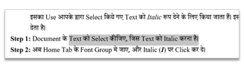 STEP 1:- Document के टेक्स्ट को सेलेक्ट कीजिये जिस टेक्स्ट को italic करना है