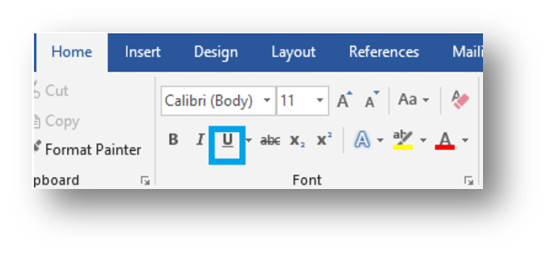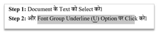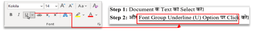 STEP 2:- अब FONT Group Underline (U) Option पर click करे
