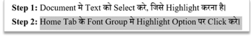 STEP 1:-Document में text को select करे जिसे Highlight करना है