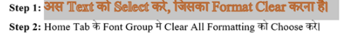 STEP 1:- उस टेक्स्ट को सेलेक्ट करे जिसका Format Clear करना है