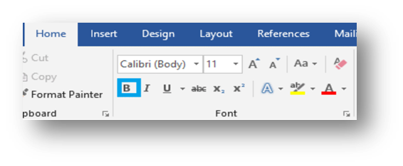(In MS WORD, under the home tab, there is a bold option in the font block from where you can bold any text or show it in bold. Its shortcut key is ctrl + B.