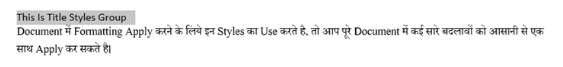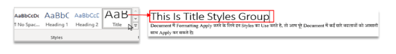 स्टाइल ग्रुप का इस्तेमाल करके आप अपने ms वर्ड page में नार्मल , No spacing , Heading 1, Heading 2, Title , Subtitle जेसे स्टाईल लगा सकते है  (By using style group, you can apply styles like Normal, No spacing,