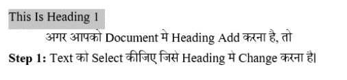 Step 1:- Text को select करे जिसे Headingमें Change करना है
