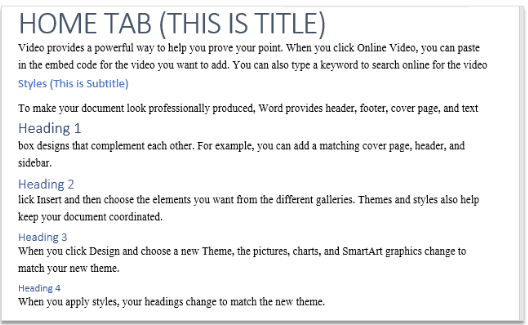 Heading 1, Heading 2, Title, Subtitle in your MS Word page)