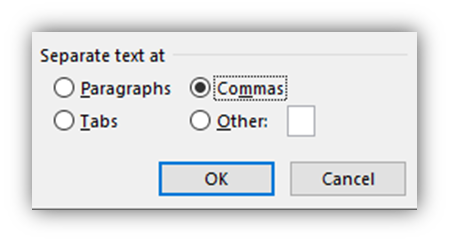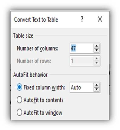 📌 Go To Insert > Table >Convert Text To Table